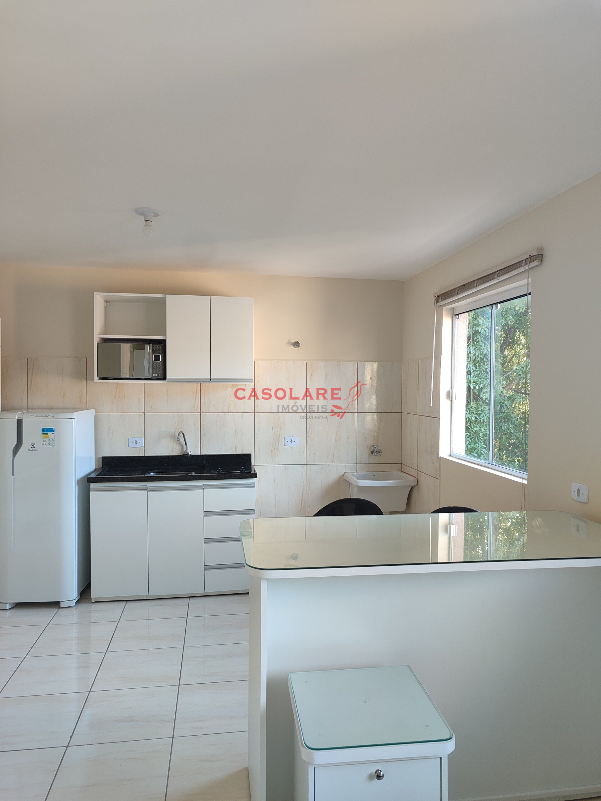 Kitinet mobiliada, com cama, geladeira, microondas, armários, internet. Locação para no máximo 02 pessoas; não é permitido animais domésticos.