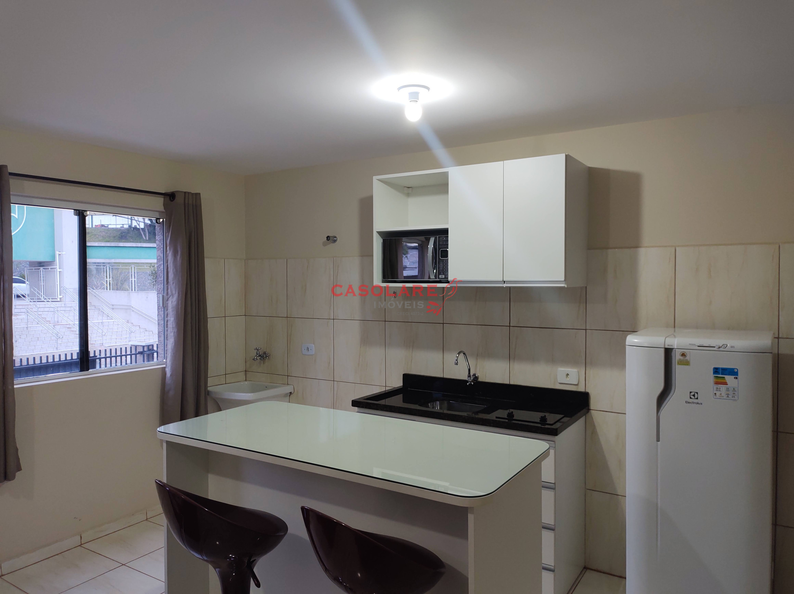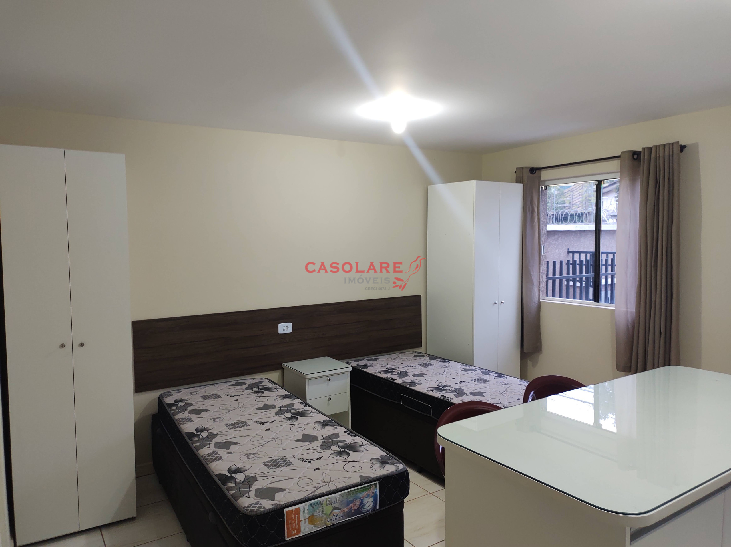 Kitinet mobiliada, com duas camas de solteiro, geladeira, microondas, armários, internet. Locação para no máximo 02 pessoas; não é permitido animais domésticos.